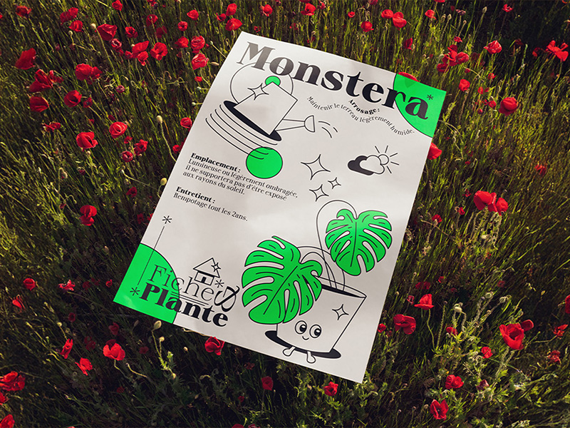 Projet personel en collaboration avec Studio Kiokio. Nous sommes tout deux des amoureux de plantes et les collectionnons, ces fiches nous permet de répertorié les plantes que l’on possèdent et comment les entrtenirs. L’illustrations se veux en accord avec les caractériqtique de la plante.