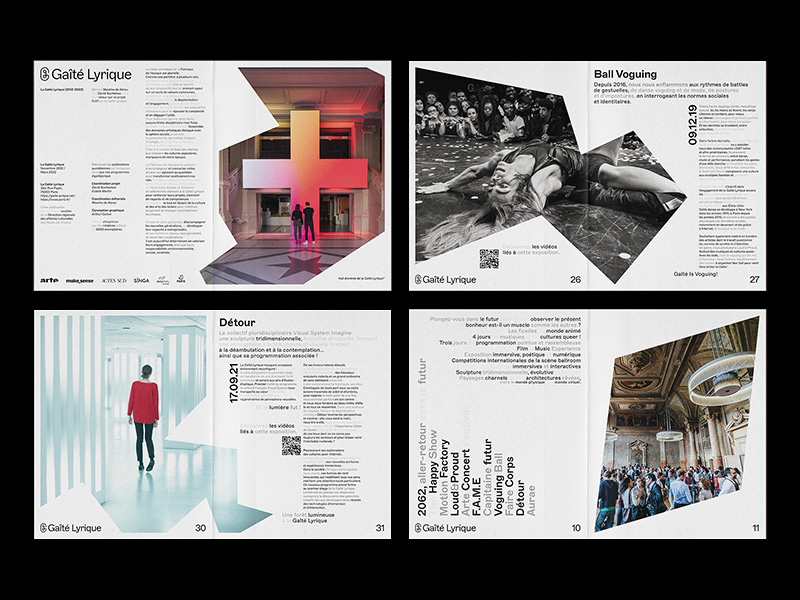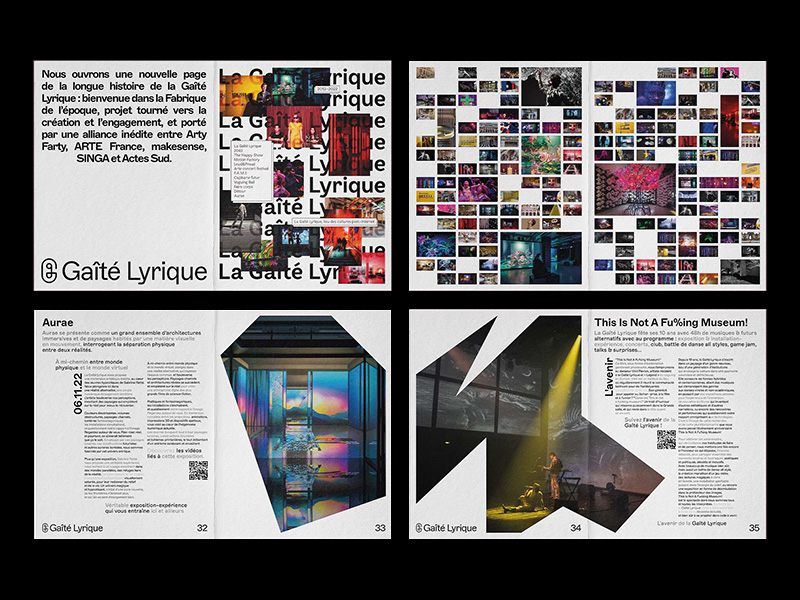 La Gaîté Lyrique est un espace de rencontres et d’échanges. On y trouve des expositions, ainsi que des conférences et des ateliers. Ce journal au format aspect constitue un objet de collection retracant l’histoire de la Gaîté, offrant une vision globale des projets réalisés entre 2012 et 2022. Les découpes des visuels, inspirées de la scénographie de chaque événement, permettent ainsi d’illustrer les événements passés.